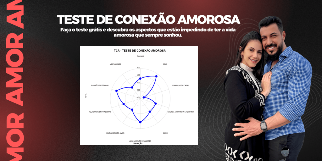 Minha mentoria tem como base o Teste de Conexão Amorosa (TCA), uma ferramenta poderosa que utilizo para mapear e compreender os principais desafios de um relacionamento. O primeiro passo do processo é realizar uma sessão de diagnóstico, onde vamos analisar sua situação de forma detalhada. Nessa sessão, iremos identificar os pontos críticos e construir uma base sólida para que você possa desenvolver um relacionamento saudável e bem-sucedido.